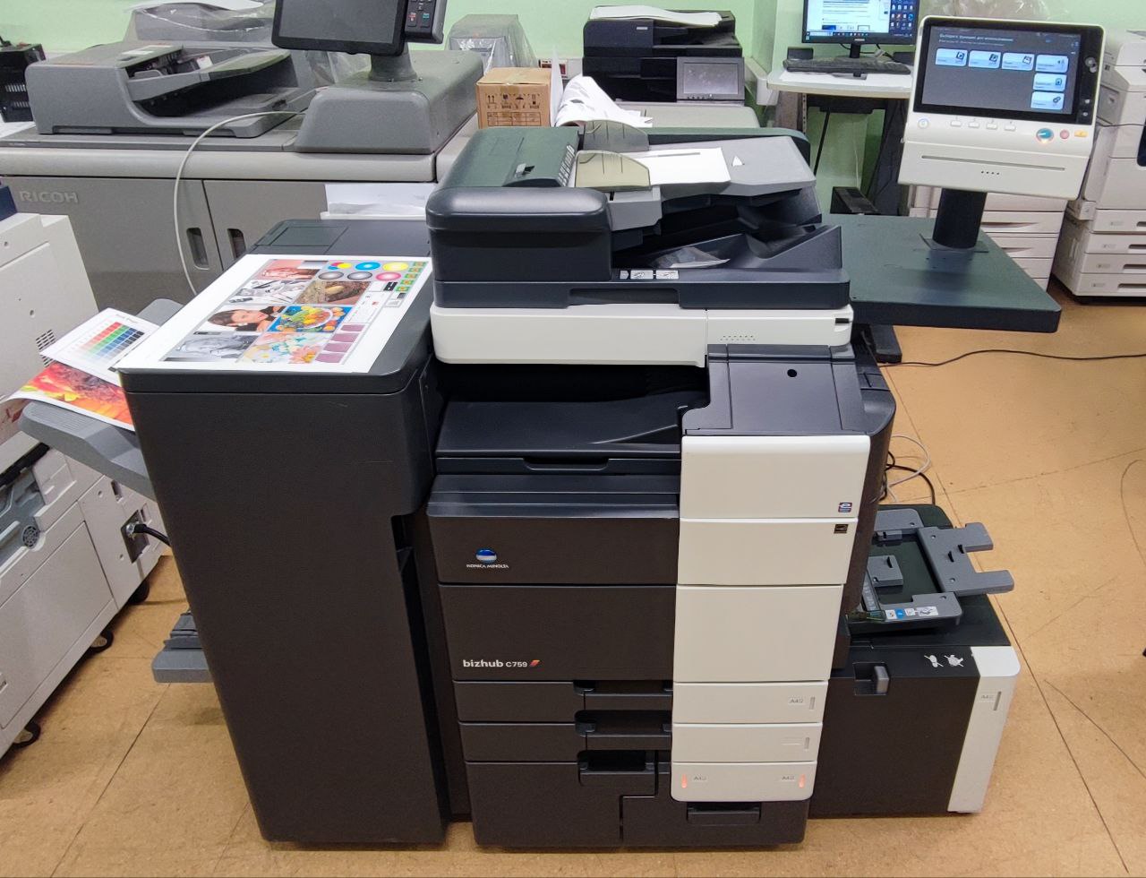 Оборудование доступно для тестирования в наших демозалах. Региональным заказчикам высылаются отчеты с ЦПМ Konica Minolta Bizhub C759, фото и видео материалы.